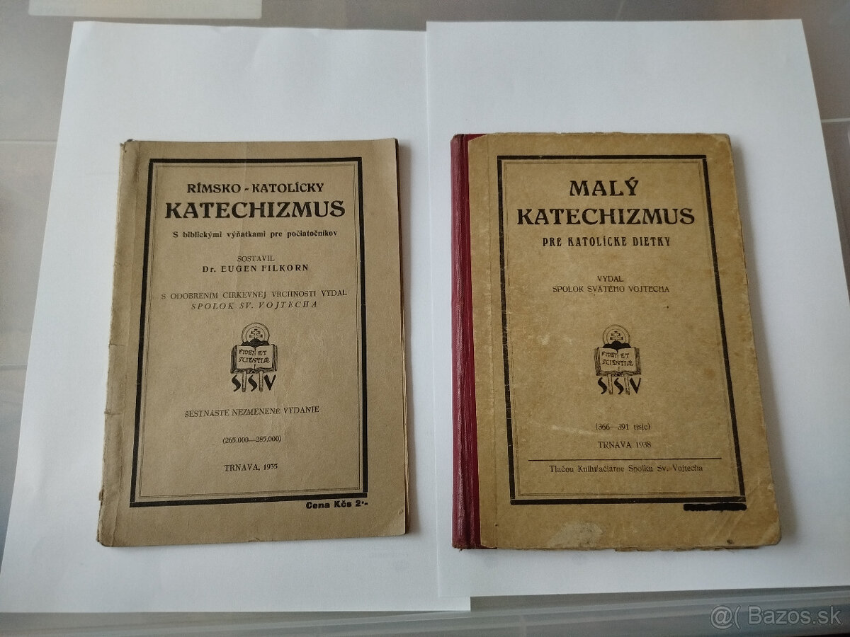 ponúkam dve knihy Katechizmu z roku 1935 a 1938 knihy sú v dobrom stave, mierne opotrebované bez vetchších poškodení. text a j ilustrácie vo veľmi dobrom stave. v prípade záujmu pošlem viac fotografií alebo video.