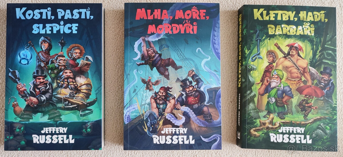 Jeffery Russell – Kosti, pasti, slepice (CZ, brožovaná) + Mlha, moře, mordýři (CZ, brožovaná) + Kletby, hadi, barbari (CZ, brožovaná) – len spolu 28EUR