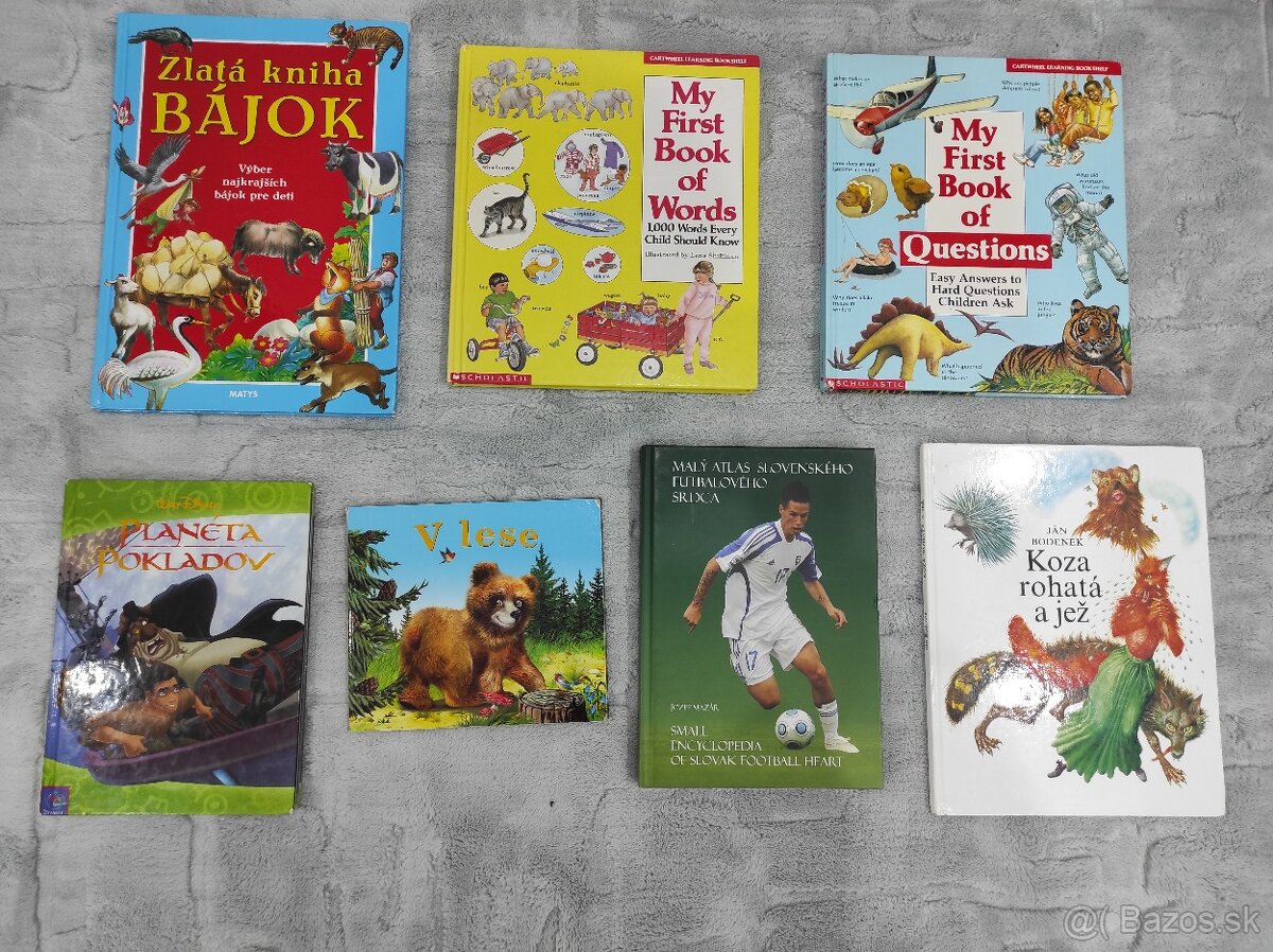 Rád posuniem niekomu tieto knihy, určite si ešte nájdu využitie. Na niektorých je vidno známky častého používania (Planéta pokladov, V lese), niektoré boli použité iba občas (Koza rohatá a jež, Zlatá kniha bájok), ale niektoré neboli použité vôbec, sú takmer ako nové (My first book of words, My first book of Questions, Malý atlas slovenského futbalového srdca). Ceny odpovedajú stavu, predám kľudne všetky naraz alebo aj samostatne. Iba vlastný odber.