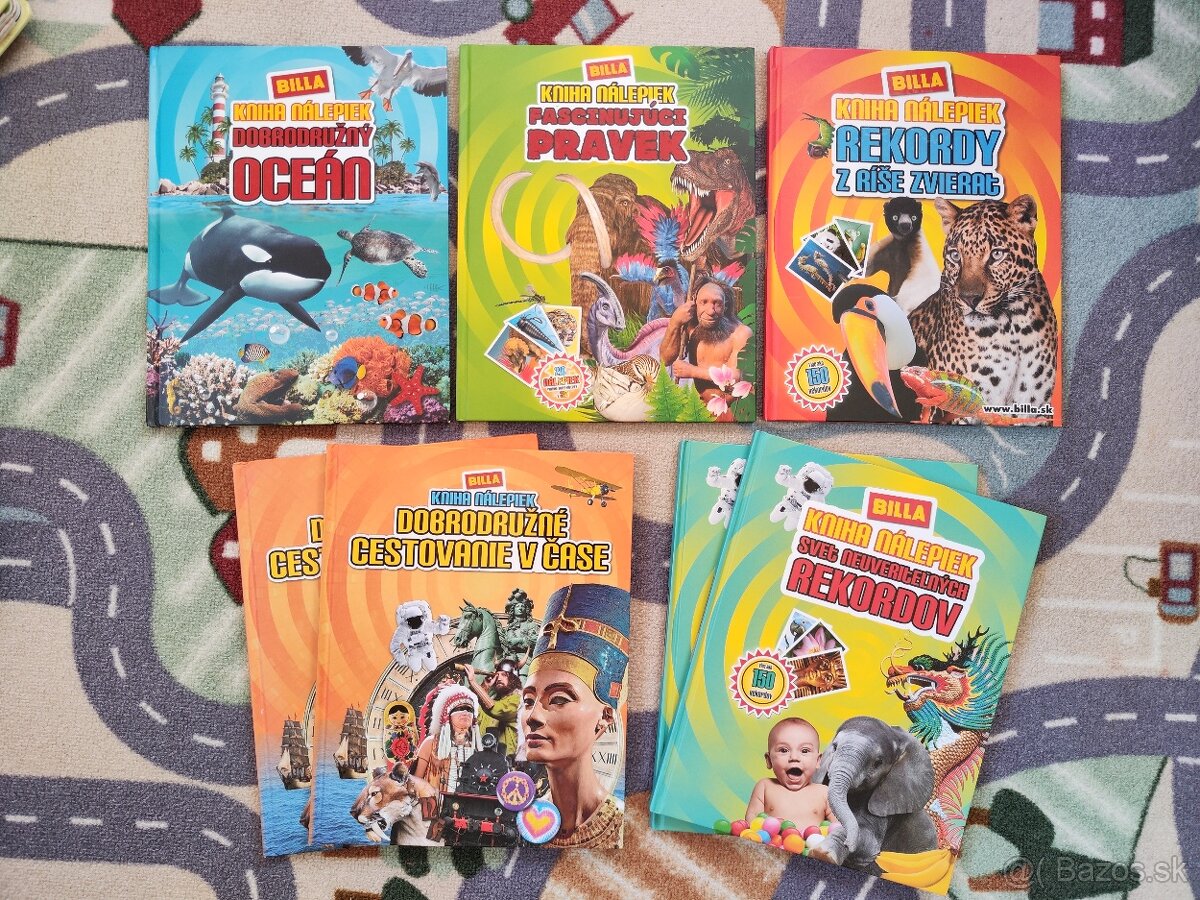 Billa knihy nálepiek, celkovo 7 kusov. Nálepky lepili deti. Knihy máme z druhej ruky, ale ešte určite poslúžia. Hlavne ako prvé encyklopédie pre malých čitateľov. Cena za kus 5€. Pri odbere všetkých cena za celok 30€