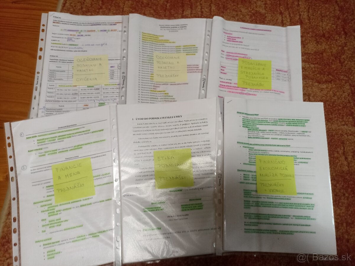 Materiály pre odbor ekonomika a manažment podniku, UNIZA, fakulta PEDAS. Na každom je napísané z akého sú predmetu, väčšinou sú tam vytlačené prednášky a zvýrazňovačom zvýraznené dôležitejšie časti z nich.