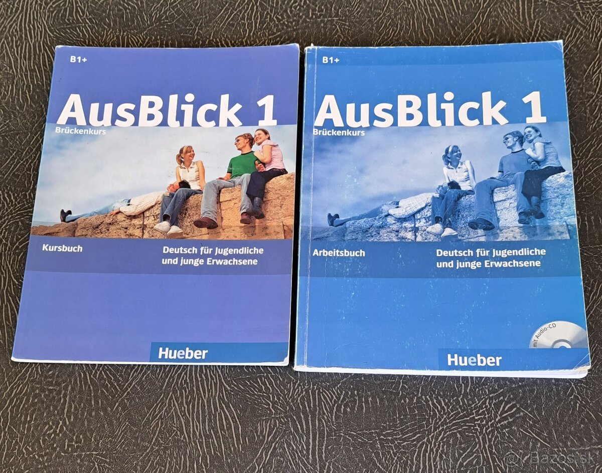 Ponúkam na predaj nemeckú učebnicu a PZ AusBlick. Niektoré strany sú vyplnené ceruzkou.