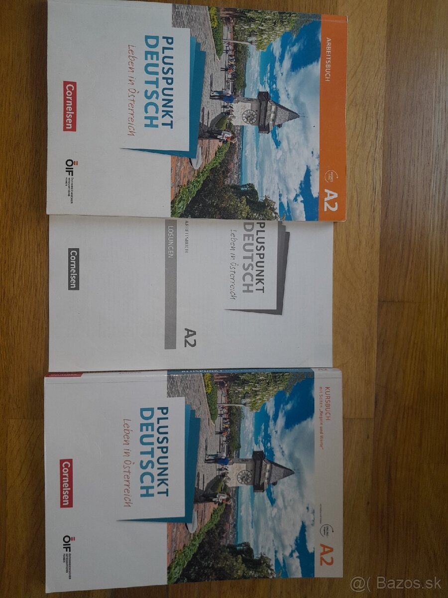 Knihy z riešením+kniha na certifikát A1. Len spolu. Dakde je pero, bohužiaľ, ostatne ceruzka( da sa pekne vygumovať). V Rakúsku jedna kniha stojí- 17-20 Euro. Posielam