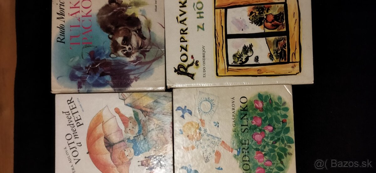 Staré detské knižky: Dobrodružstvá Ivka Pivka, Rozprávky čarovných kamienkov, Danuška, Malý kúzelník, Nikdy nedostanem list, Ako si odškvŕknuť krídkla, A zase preskakujem kaluže, Devätoro rozprávok, Tisícnásobný dukát, Chobotnice, Nestrácaj hlavu Jožko, Čenkovej deti, cena 3 - 5 Eur/kus