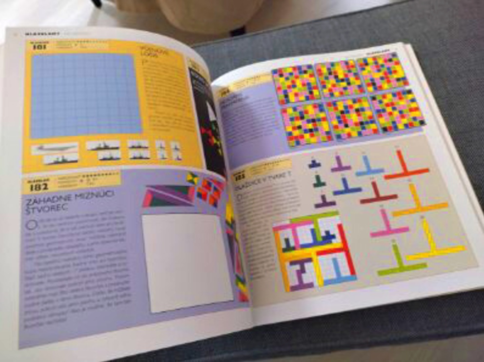 vyše 280 podnetných a zábavných úloh z rôznych oblastí matematiky, ktoré sú vynikajúcim prostriedkom na povzbudenie logického myslenia i tvorivosti. V prvej kapitole hrajú prím rébusy z geometrie, v druhej sa logické myslenie stretáva s krivkami a kruhmi, v tretej zase so skladačkami, a štvrtá, posledná kapitola sa venuje zaujímavej oblasti s názvom topológia, ktorá je plná paradoxov a rozličných tvrdení.