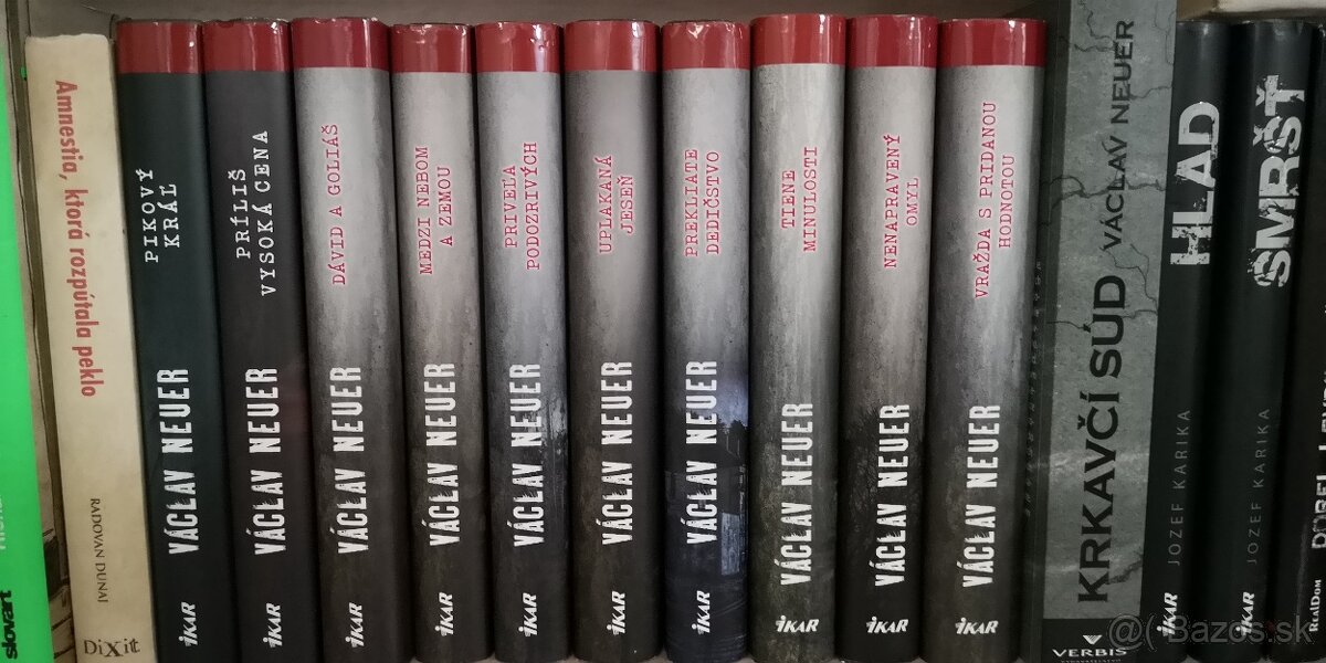 Predám kompletnú zbierku kníh od Václava Neuera. Knihy sú raz čítané. Nepoškodené. 8€-ks. Na predaj aj J. Karika Hlad a Smršť 6€-ks, a Dominik Dán Mačacia stopa a Venuša zo zátoky 6€-ks