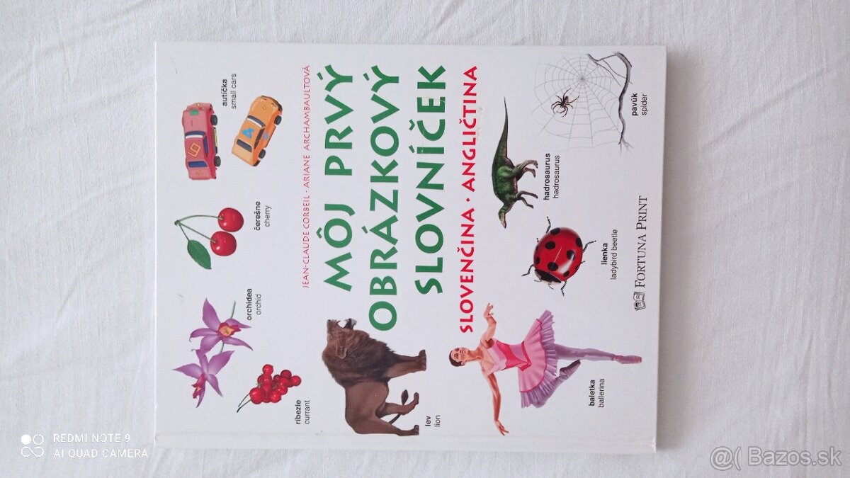 Predám knihu Môj prvý obrázkový slovnícek (slovenčina - angličtina). Obsahuje 36 tém,1600slov,1300 farebných ilustrácií. Má pevnú väzbu. Rozmery 221x257mm.