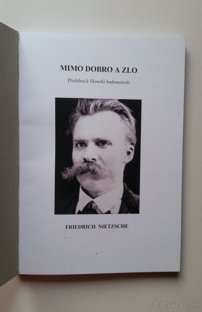 Predám knihu - Friedrich Nietzsche: Mimo dobro a zlo. Ide o reprint vydania vydavateľstva Aurora, rok vydania 1996. Kniha je ručne viazaná, v lesklých kartónových doskách (viď fotografie).