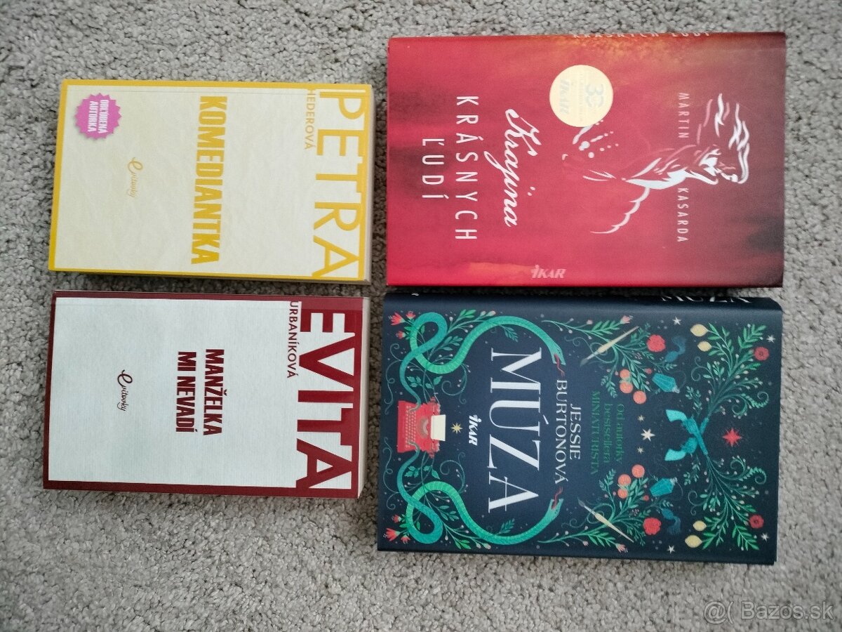 Knihy pre ženy - [25.2. 2026]Predám knihy pre ženy po 1 € za kus. Je ich tam 20 kusov. Vhodné ako darček. Pri odbere všetkých je cena spolu 5 €. Kliknite na moje meno a pozrite aj ostatné moje inzeráty, zašlem aj na dobierku. Posielam poštou, alebo cez Packetu. Píšte priamo na mail: maja19.maja75@gmail.com, alebo volajte 091015 ...