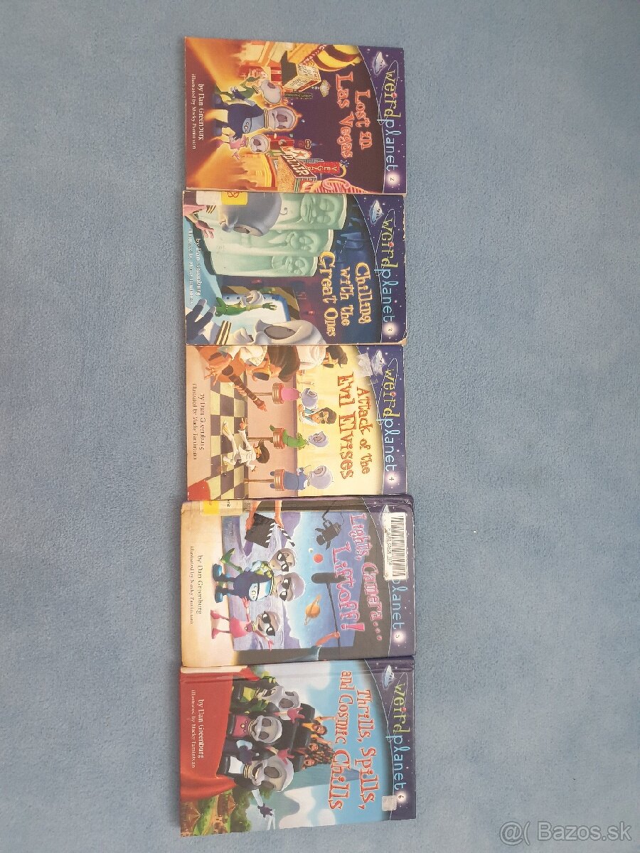 Predám sériu 5 kniziek Weird Planet, Lost on Las Vegas, Chilling with the Great Ones, Attack of the Evil Elvises, Lights, Camera Liftoff a Thrills, Spills and Cosmic Chills. Použité v zachovalom stave. Cena za 1 knižku 3 EUR, cena za 5 kniziek 12 EUR.