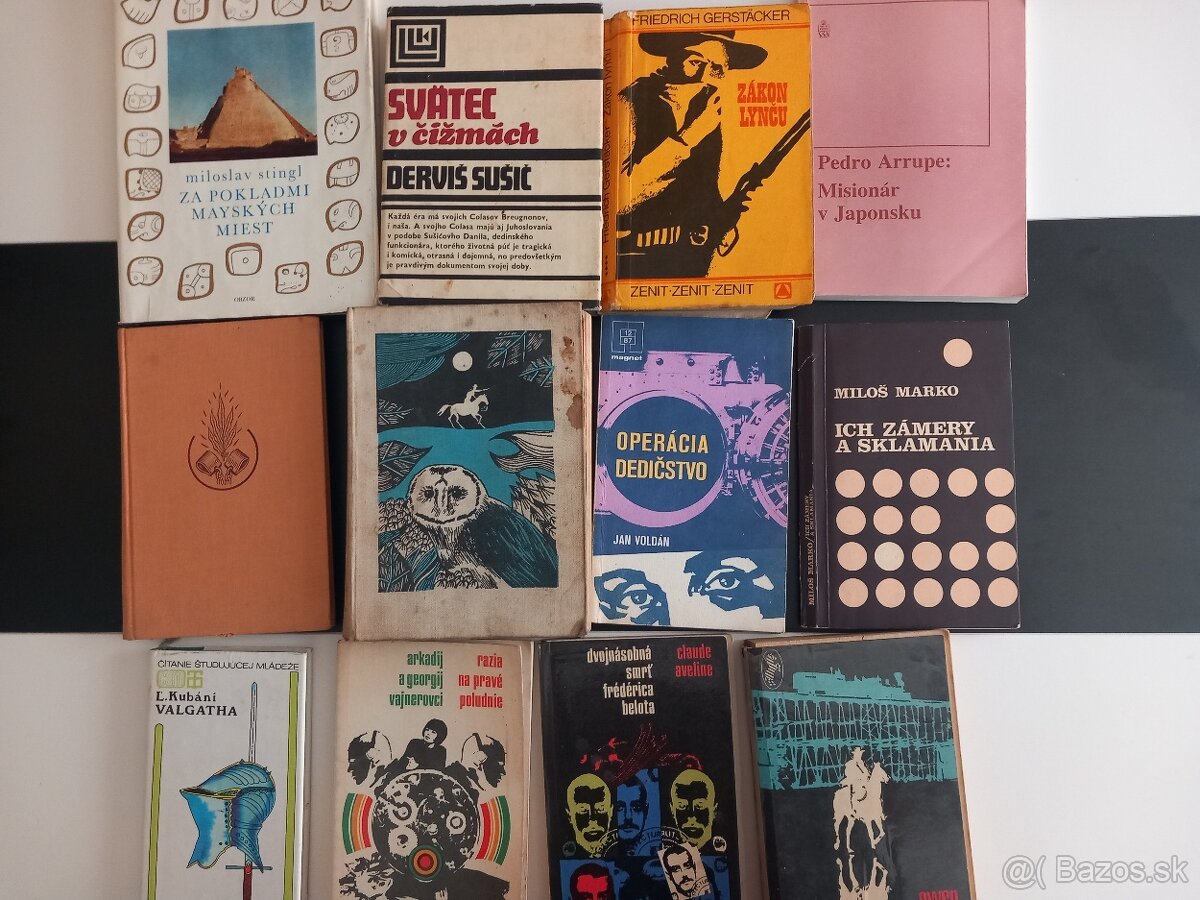 Predám knihy za drobné cenník : Miloslav Stingl - Za pokladmi Majských miest 1,50 euro , Derviš Sušič - Svätec v čižmách 1,50 euro , Friedrich Gerstäcker - Zákon lynču 1,50 euro , Pedro Arrupe - Misionár v Japonsku 1,50 euro , Zaharia Stancu - Psi 1 euro , Karl May - Na Rio de la plata 1 euro , Jan Voldán - Operácia dedičstvo 1,50 euro , Miloš Marko - Ich zámery a sklamania 1,50 euro , L.Kubáni - Valgatha 1 euro , Arkadij a Georgij Vajnerovci - Razia na pravé poludnie 1 euro , Claude Aveline - Dvojnásobná smrť Frédérica Belota 1 euro , Owen Wister - Virgínčan 1 euro. Oosbný odber Bzenica alebo pošlem poštou resp. packetou . Pozrite aj daľšie knihy. Možno vás zaujmú aj iné veci z našej ponuky, nech sa páči, pozrite si kliknutím na moje meno.