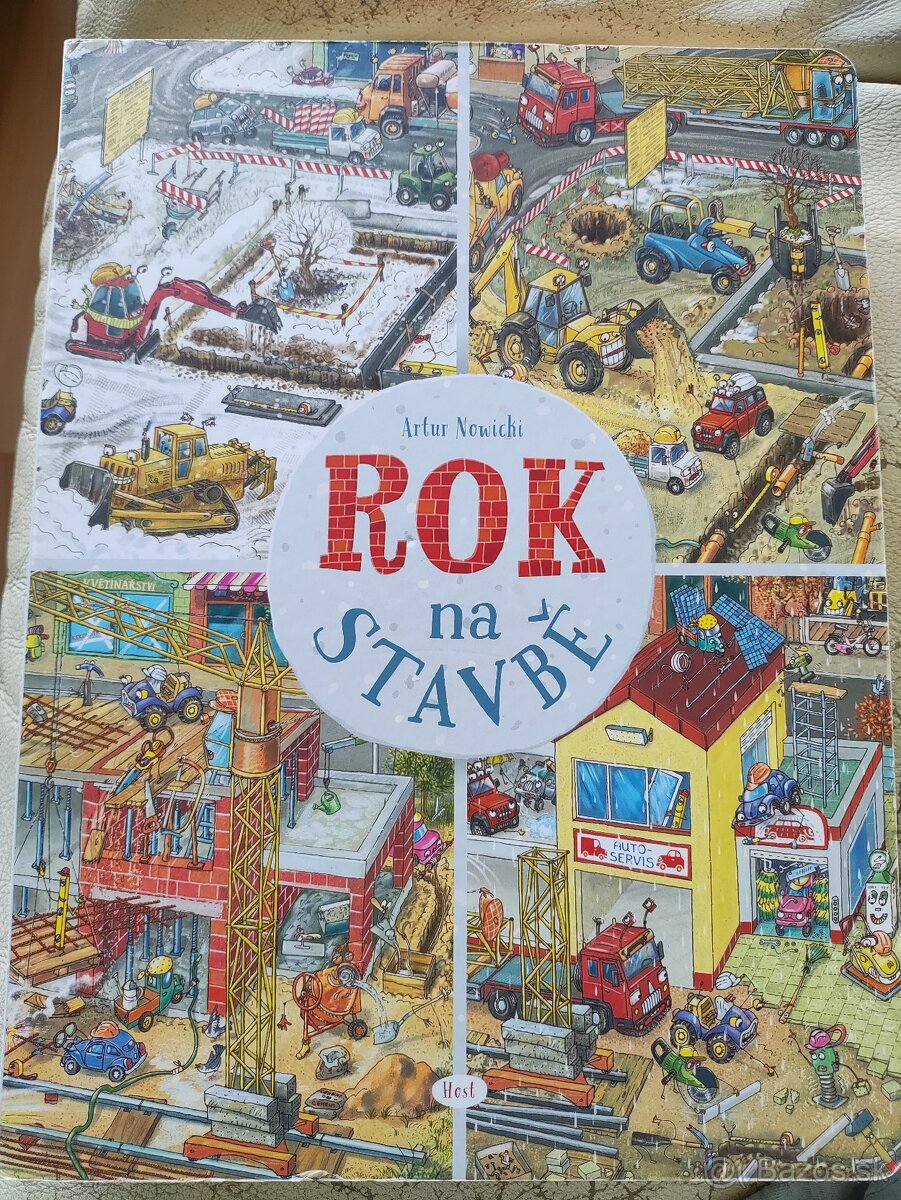 Obrázkové leporelo. Na prvej dvojstrane je vysvetlené, na čo jednotlivé stroje na stavbe slúžia, a na nasledujúcich 12 dvojstranách môže dieťa sledovať, ako stavba od januára do decembra rastie a ako jednotlivé stroje pracujú.