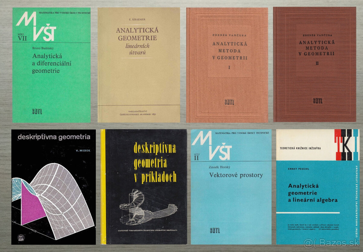 Ponúkam knihy a učebnice: analytická, diferenciálna a deskriptívna geometria. Knihy sú v peknom a zachovalom stave.