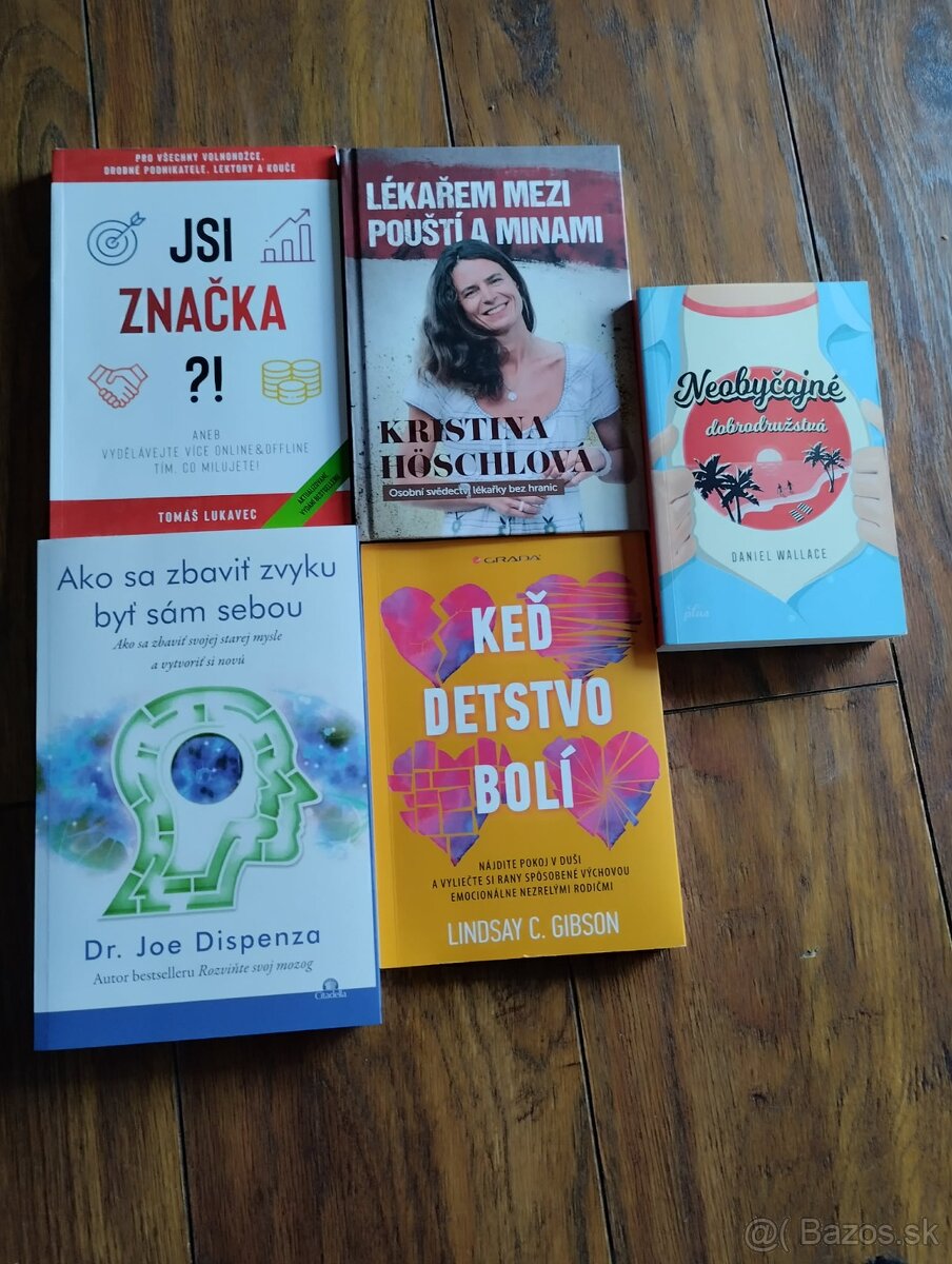 Predám knihy v TOP stave: Tomáš Lukavec – Jsi značka ?! – 9 eur, Kristína Höschlová - Lékařem mezi pouští a minami – 10 eur, Daniel Wallace - Neobyčajné dobrodružstvá – 15 eur, Joe Dispenza – Ako sa zbaviť zvyku byť sám sebou – 10 eur, Lindsay C. Gibson – Keď detstvo bolí – 11 eur