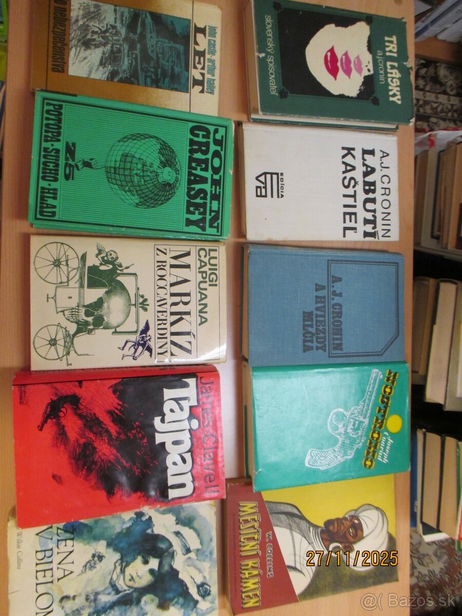 Predám 1-3 € knihy:Capuana-Markíz z Roccaverdiny,Castle+Hailey-Let do nebezpečenstva,Cimický-Atentáty na de Gaulla,Gang smrtiacich snov,Clavell-Potkan kráľ,Tajpan,Clementis-Nedokončená kronika,Collins-Žena v bielom,Mesačný kameň,Corman-Kramerová versus Kramer,Conrad-Nostromo,Almayerovo šialenstvo,Cook-Známky života,McCulloughová-Vtáky v trní,Creysey-Potopa,Sucho,Hlad,Cooper-Stopár,Cronin-Tri lásky,Citadela,Kľúče od kráľovstva,Klobučníkov hrad,A hviezdy mlčia,Csengeryová-Greta Garbo,Curwood-Kráľ sivých medveĎov,Čapek-Cesta an sever,Čárska-Ruža z Kaukazu,Sibirôčka,Čiladze-A kto ma stretne,Čejda-99 všetečných otázok a odpovedí,Černoch-Strojne technická priručka 1+2