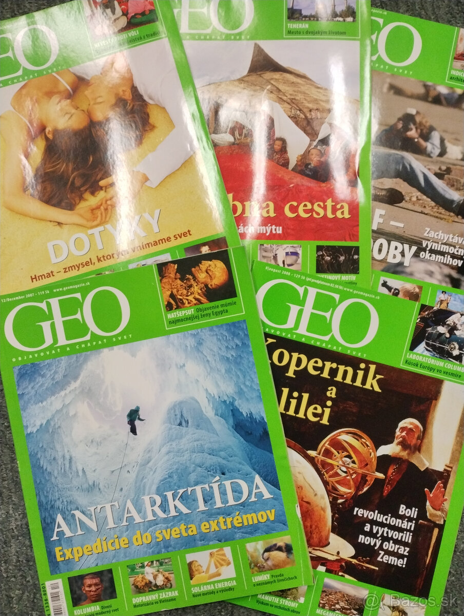 Predám časopis GEO, nekompletné ročníky 2005 (Nov. a Dec.), 2006 (mar., apr. máj, okt., nov.), 2007 (mar., jún, júl, nov., dec.), 2008 (mar. až aug., okt., nov.), 2009 (okrem okt. a dec. všetky), 2010 (mar., apr., jún), 2012 (jan. až mar., jún až aug., nov., dec.), 2013 (jan., feb., apr., júl až dec.), 2014 (aug, sept. nov, dec.), 2015 (aug.), 2016 (mar.) Výborne zachované - super stav. Foto sú len príklady a náhodne vybrané. GEO je prestížny magazín pre všetkých milovníkov cestovania, prírody, kultúry a poznania. Prináša autentické reportáže z najzaujímavejších miest planéty, príbehy ľudí a komunít, ktoré formujú našu civilizáciu, a pohľad na aktuálne globálne témy.